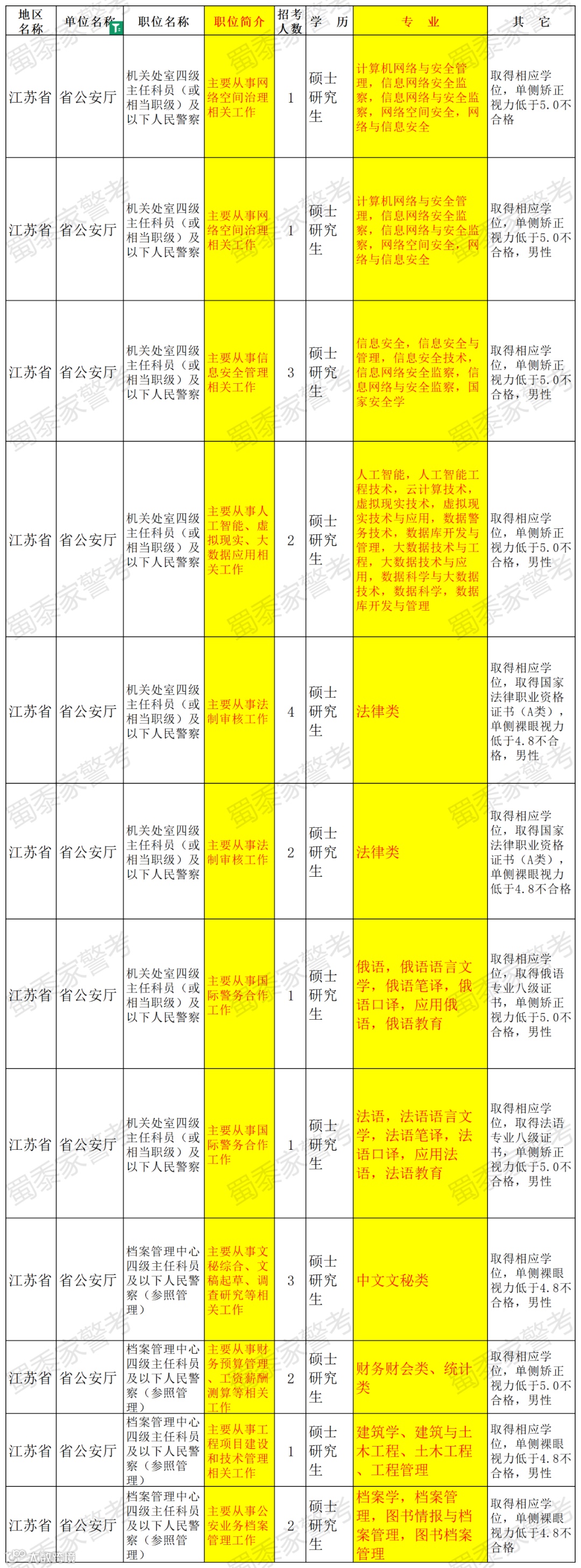 小编梳理了江苏省公安厅的职位表。