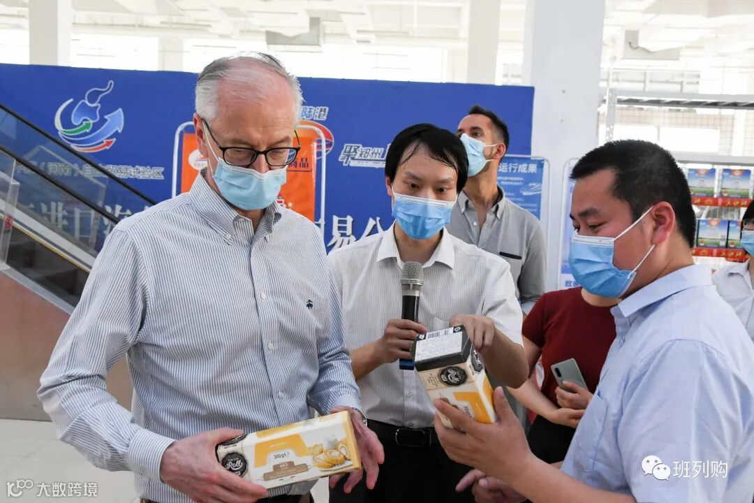 在郑欧进口商品展示体验中心,郑州国际陆港公司副总经理康岩向大使馆一行介绍了郑州国际陆港公司“运贸一体化”成果。郑州国际陆港公司依托自主研发的冷藏集装箱及监控平台等冷链软硬件运输优势,自主采购、经营郑欧进口商品。目前郑欧进口商品线上线下同步销售,销售渠道基本覆盖全国范围。郑欧进口商品依托郑欧班列直采直运,欧洲原装进口商品最快12天即可抵达郑州,继而销往全国各地,保证“真、快、鲜”。消费者可以通过郑欧进口商品自带的防伪溯源码了解商品的生产、运输、进口等具体信息。