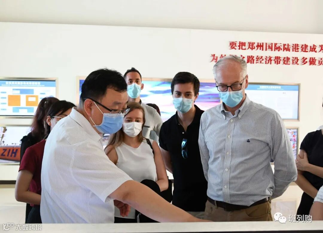 在郑欧班列综合服务中心,杨文俊副总向大使馆一行介绍了郑欧班列的运行情况。2013年郑欧班列开行时每月一班,经过六年多的奋斗,郑欧班列目前每周去程14班、回程10班高频高质开行,“七个目的站点,六个出入境口岸”,基本构建了河南连通欧洲、中亚和东盟及亚太(日韩等)国际物流大通道,已经成为了“一带一路”推进互联互通的一支重要力量。