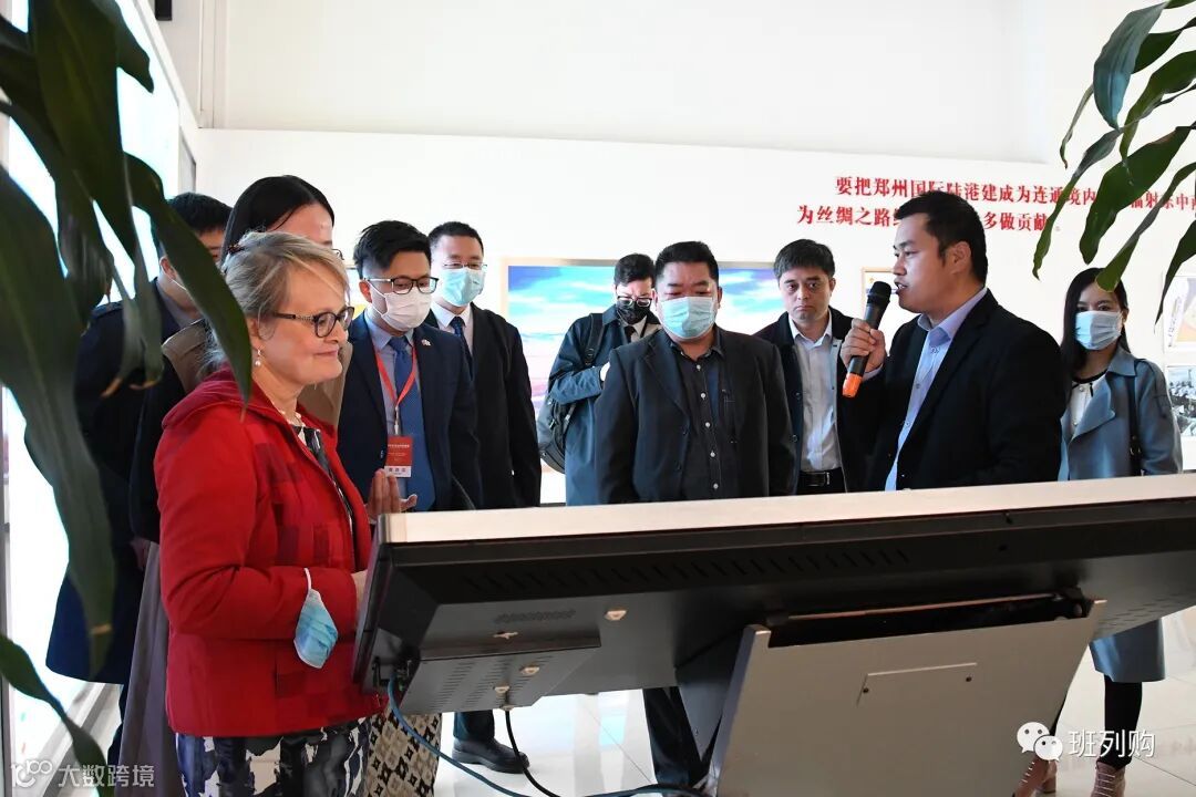 在郑欧班列综合服务中心,芬兰企业家一行了解了郑州国际陆港公司发展情况和郑欧班列开行情况。