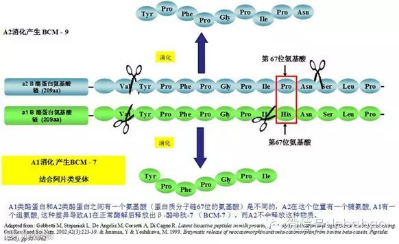 β-酪啡肽-7(BCM-7),而A2 β-酪蛋白则不会生成BCM-7。