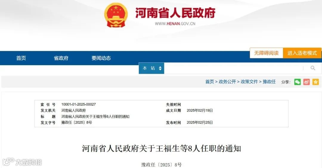 豫政任〔2025〕8号