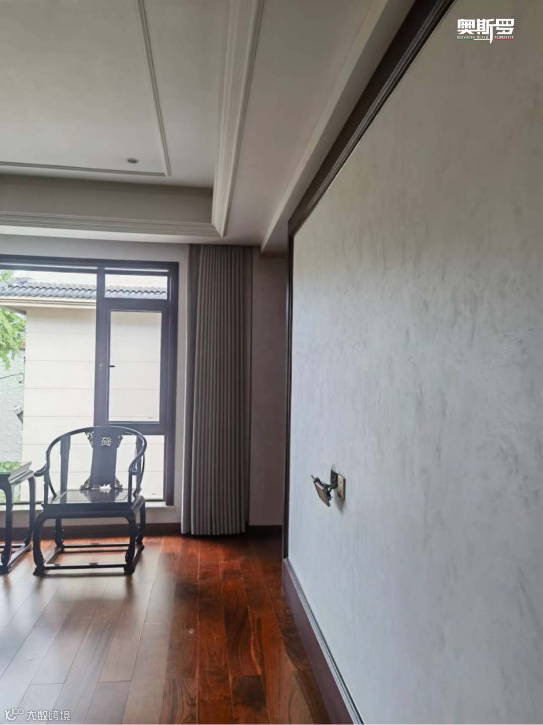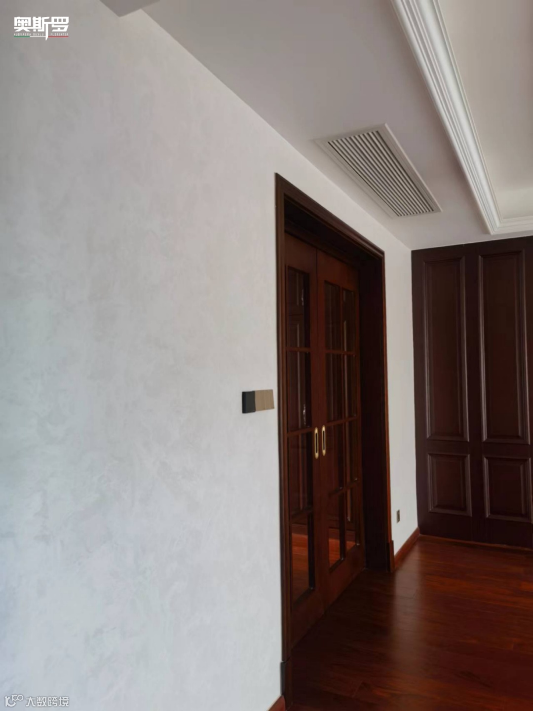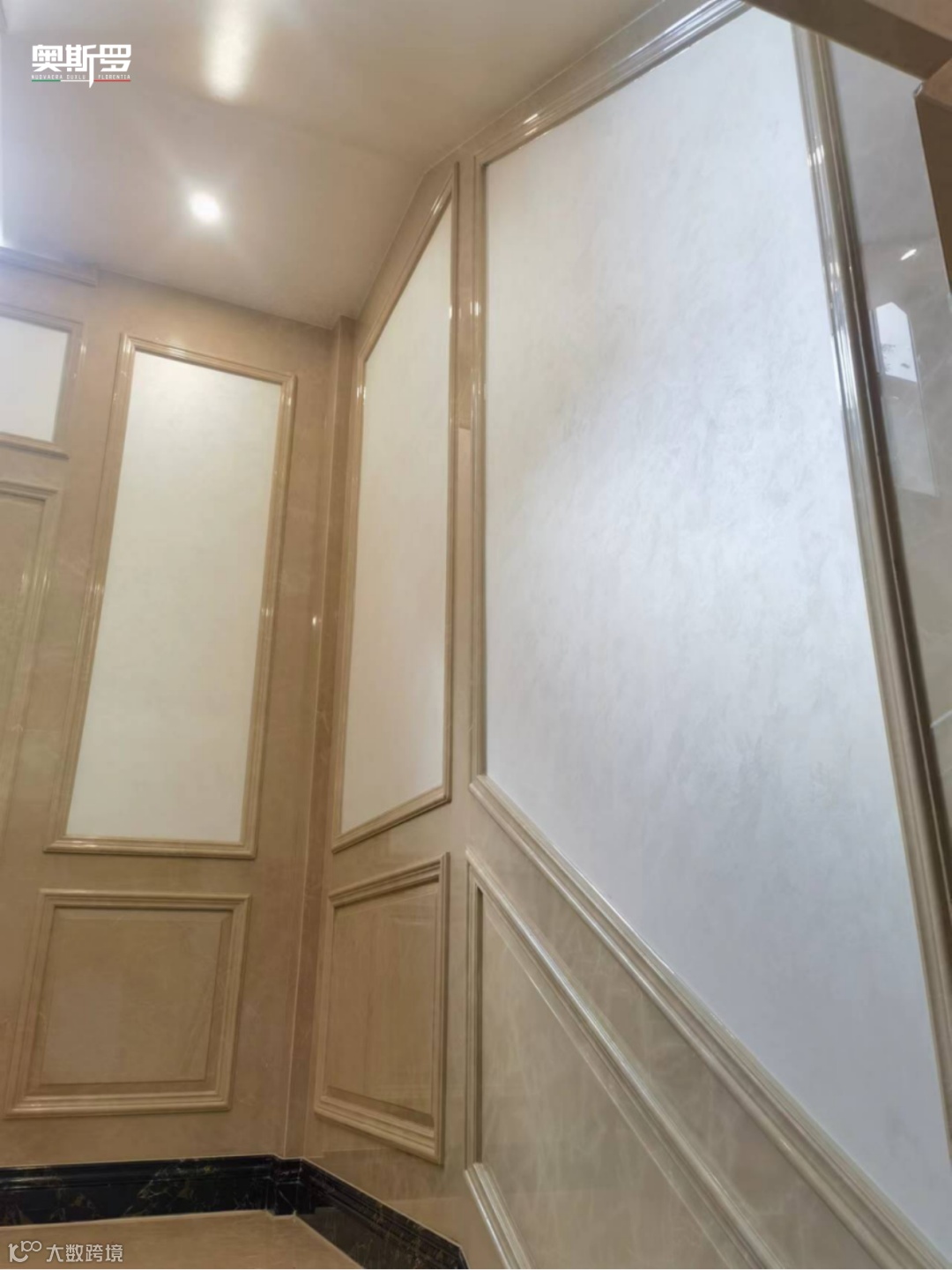 而奥斯罗的墙面与天花工艺,则用光影与质感,将这两种气质温柔串联 —— 美泰洛幻影的珠光让华贵更显通透,珍珠绒的柔润让沉稳更添温度,恒康蛋壳光三代的实用让日常更具质感。