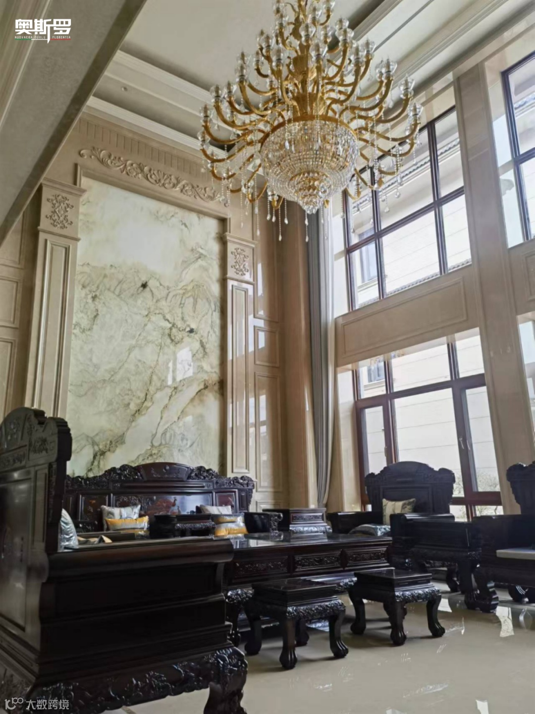 西式的水晶吊灯、金色线条、大理石背景,注入了华贵与精致;