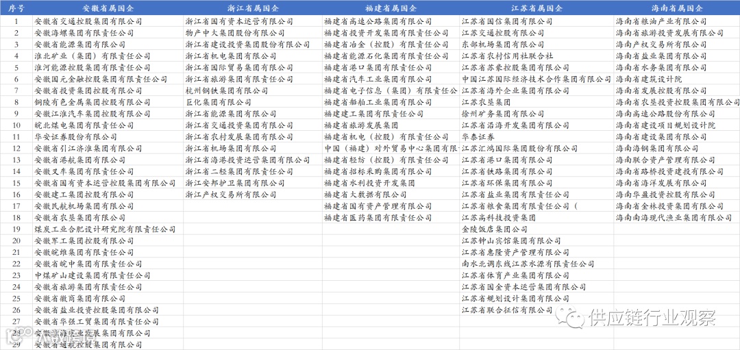 东南一徽包浙江、福建、江苏、海南、安徽等5省,共107家省属国企,其中安徽省29家、江苏省26家、浙江16家、福建18家、海南18家。