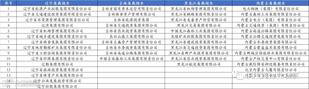 东北三省共有36家省属国企,其中辽宁省15家、黑龙江11家、吉林省10家。相对其他省份,在行业分布上东三省因其丰富的林业资源,森工集团是省属国企的一大特色。此外,内蒙古拥有13家省属国企。