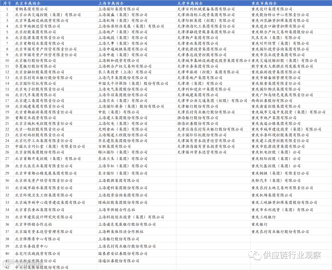 据小编统计,北京、上海、天津、重庆四大直辖市省属监管企业共146家,其中北京市42家、上海市41家、天津市26家、重庆市37家。