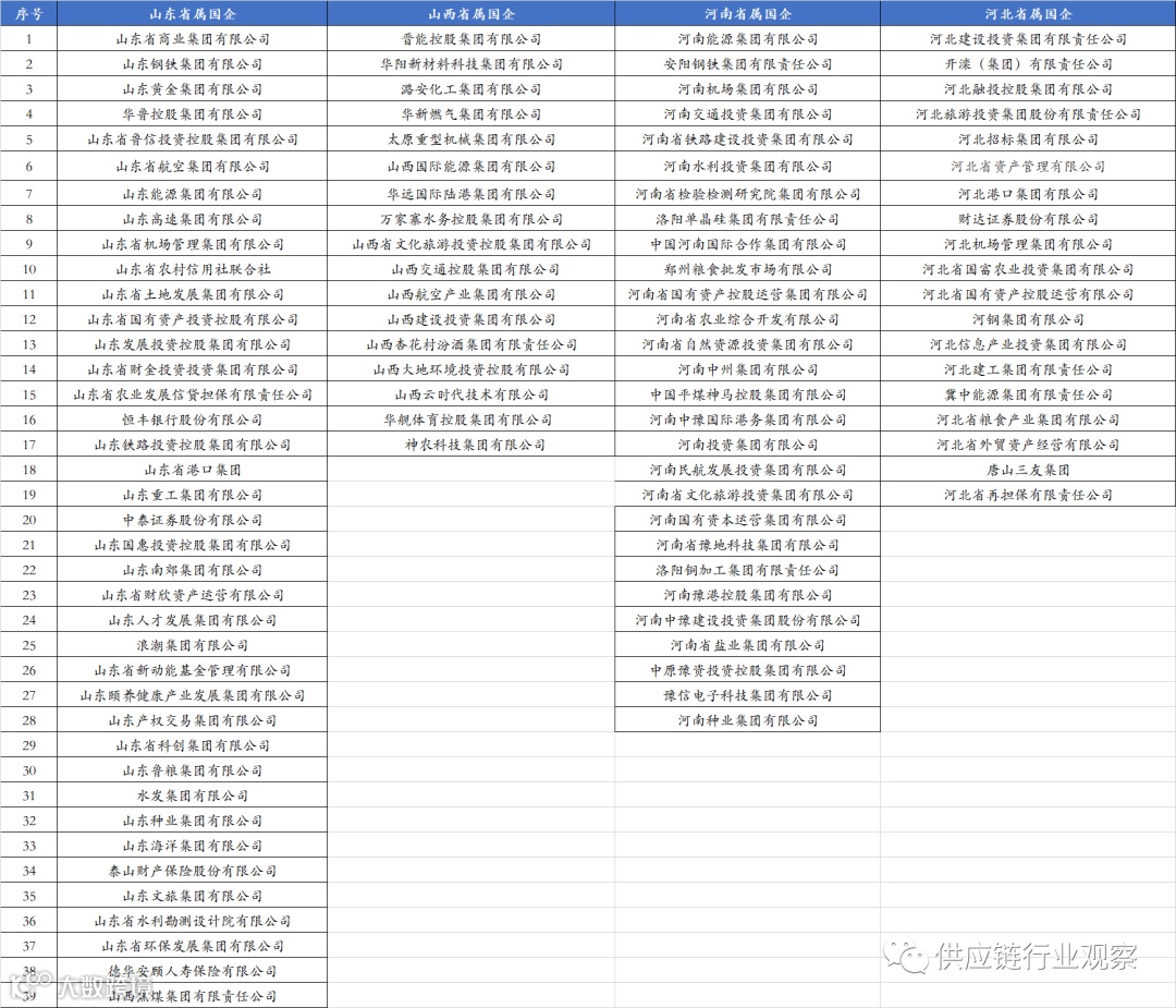 根据各地国资委披露的监管企业名录,山河四省共有省属国企103家,数量上占全国比重的16%左右。其中,山东省属国企38家、山西省属国企18家,河南28家,19家。具体名录如下,下表山西焦煤应为山西省属国企: