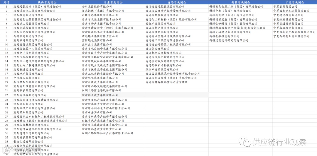 西北5省分别为陕西、甘肃、宁夏、新疆和青海。西北5省共拥有103家省级国企,其中陕西数量最多36家、甘肃31家、青海19家、新疆9家、宁夏8家。