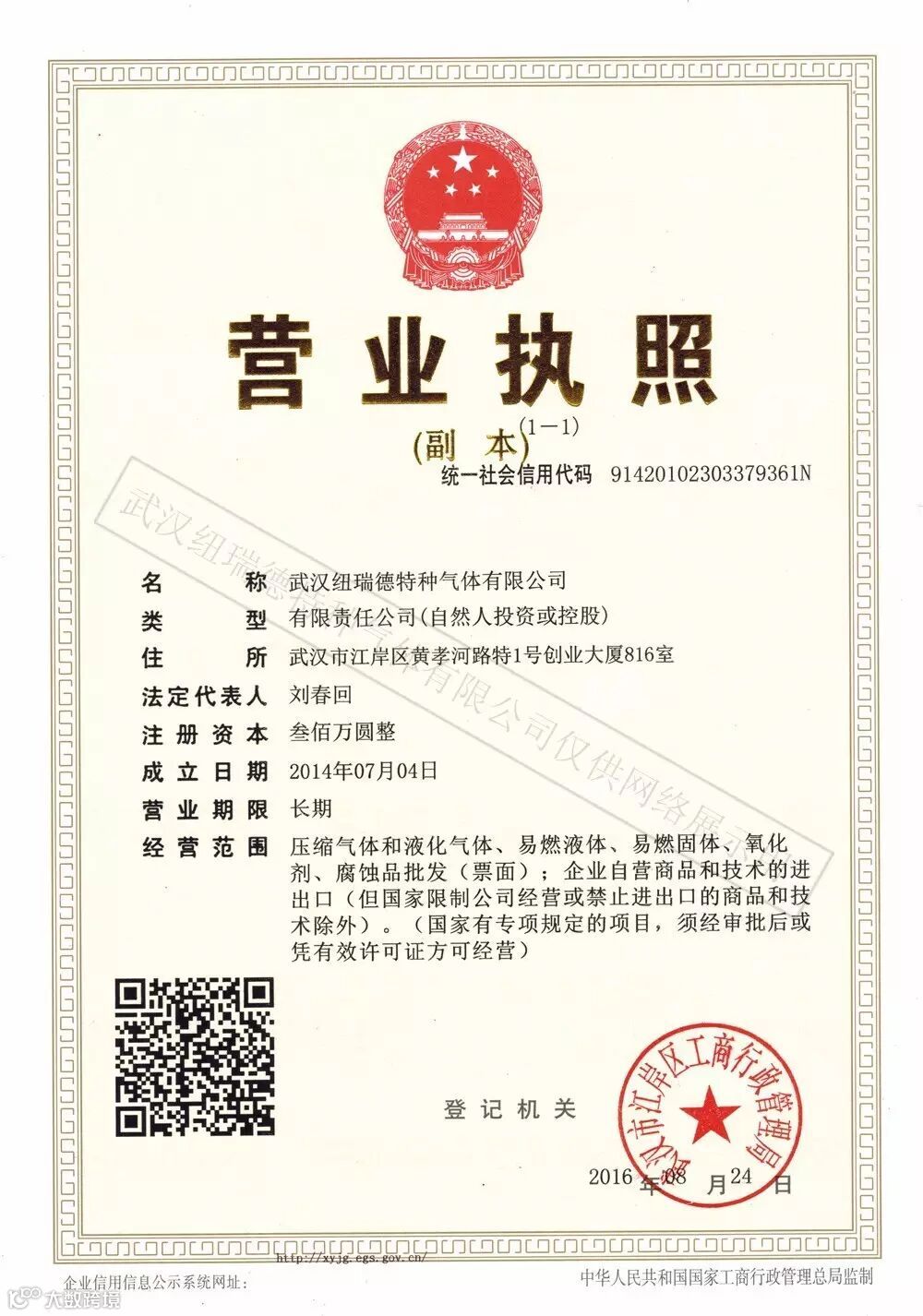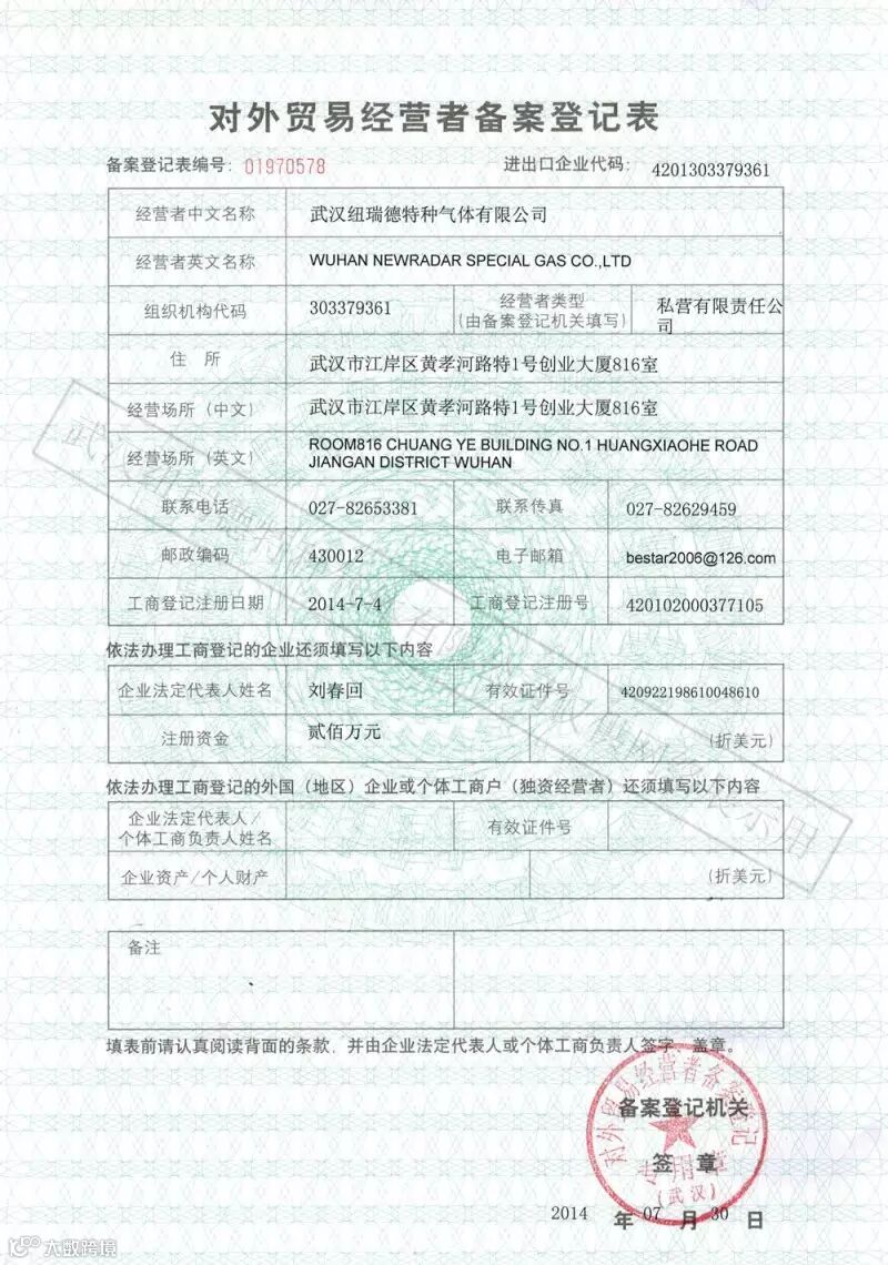 成立武汉纽瑞德特种气体有限公司