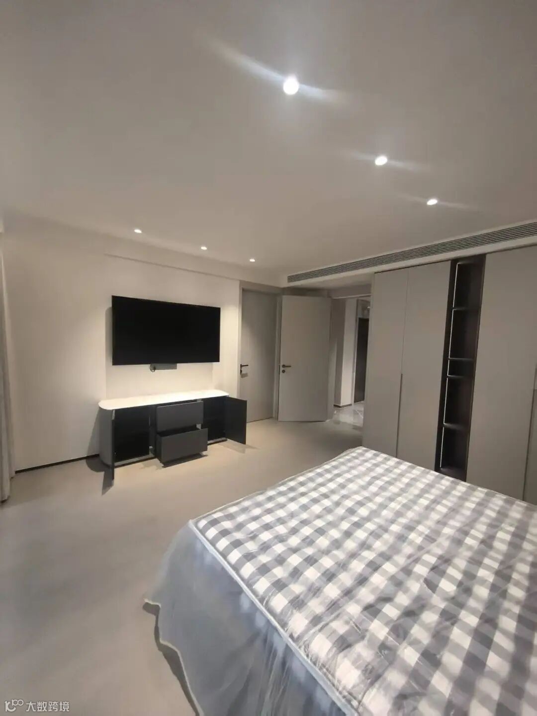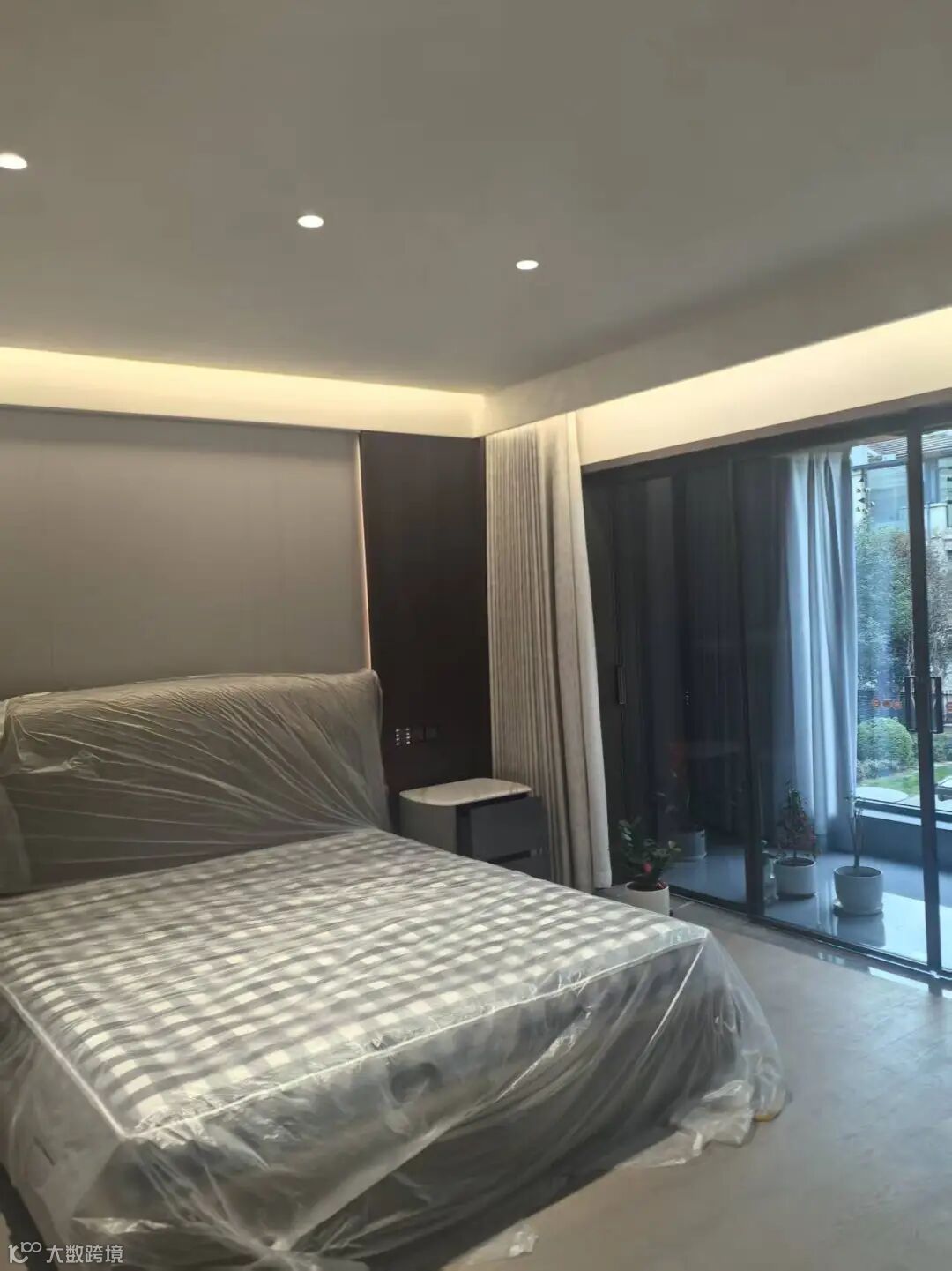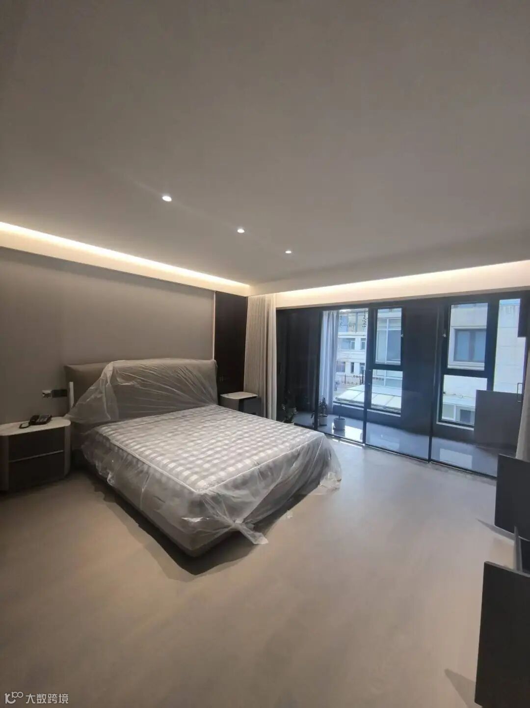 在配备整面落地窗的主卧,斯达丝绸涂料赋予墙面如真丝般的垂坠质感: