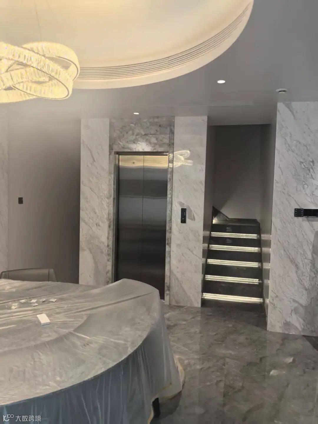 别墅的公共区域(客厅、餐厅与电梯厅)是家族社交与日常动线的核心,奥斯罗常州服务中心选用OUXLU 贵族系列大宅风皮感涂料,完美适配现代轻奢的设计调性。