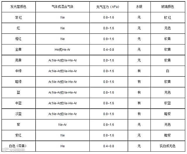 ⊙冷阴极放电管中各种稀有气体在放电时呈现的颜色