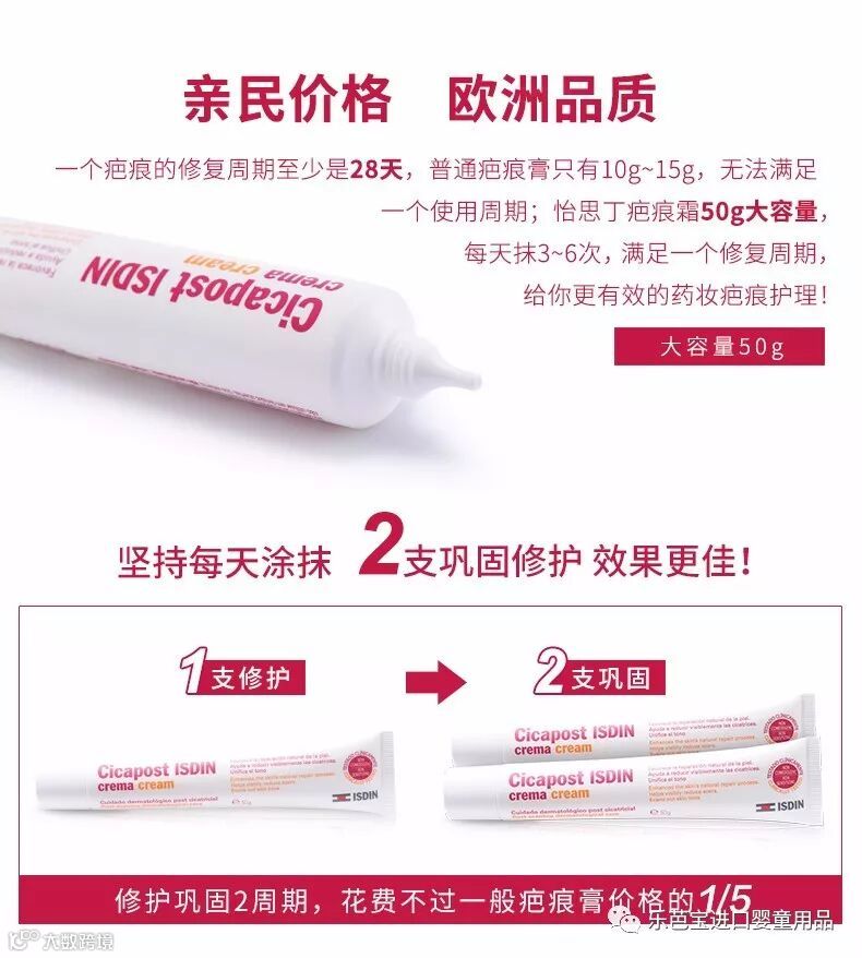 这支ISDIN疤痕修复霜足足有50g,足够每天涂抹3~6次、用上一个多月了。