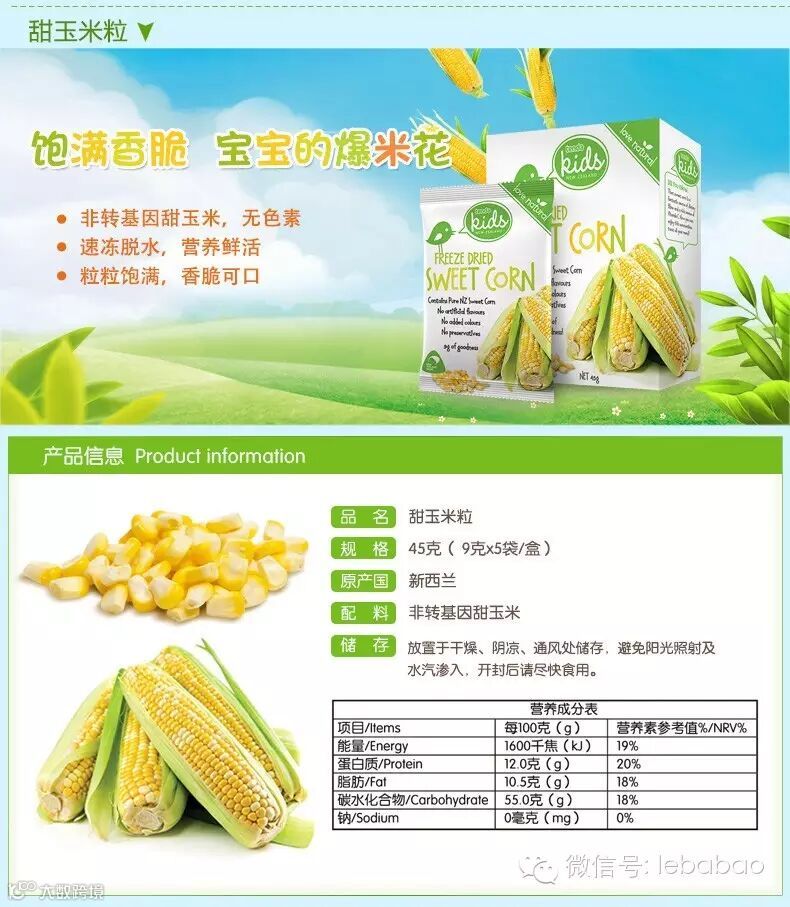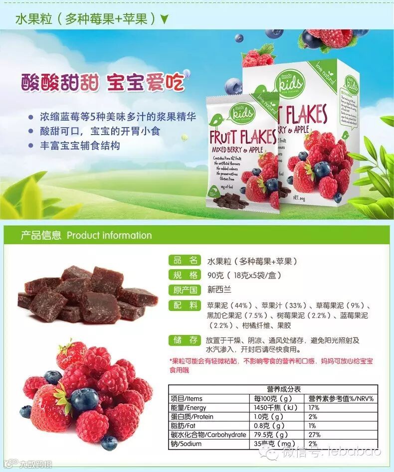 新品!恬爱 新西兰进口宝宝零食