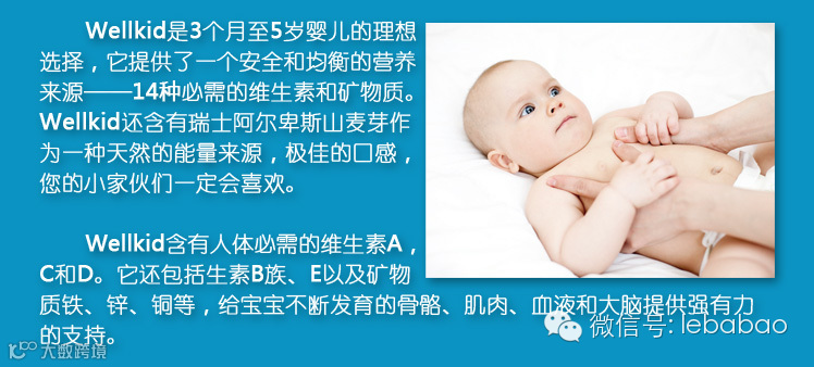 WellKID宝宝营养液是Vitabiotics特别研发,针对3个月到5岁的宝宝提供安全和均衡全面的14种基本维生素和矿物质,特别添加了瑞士阿尔卑斯山高山麦芽,为宝宝的味觉提供尝试并让喜欢宝宝。