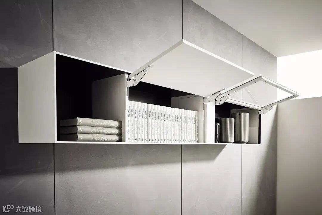 如果在门板宽度的设计上有所偏爱,又担心一对隐形门撑的承重能力不够,那么可以选择在中间增加一个隐形门撑,增加50%的承重能力,同时一次开启两个柜体,使用起来更加方便。