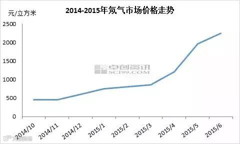 氖气可谓是近期最为火爆的气体,其价格在2014年11月前一直稳定的450元/立方米左右,市场仅有首钢气体及武钢气体进行供货,主要走量合同户,基本维持供需平衡,价格平稳难起波澜。但由于占据世界市场供应量近乎70%的乌克兰因为局势紧张,在2014年4月份左右基本清关,难以有效的为世界氖气市场提供货源,进而供需矛盾不断激化。