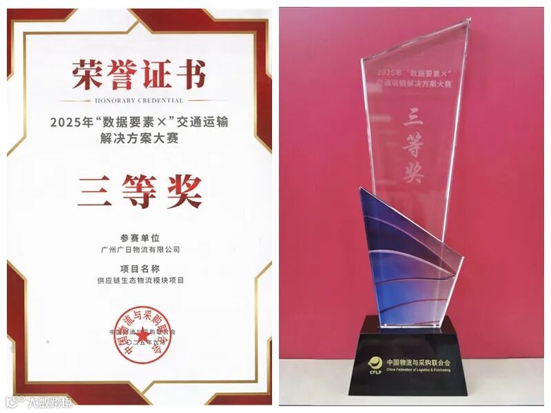 9月26日,2025年第十七届物流与供应链数字化发展大会在上海举办,大会聚焦物流与供应链数字化转型,面向制造、贸易、物流、供应链等企业展示前沿技术和典型案例,发掘产业智慧升级新动能。广日物流凭借“智能物流管控系统项目”“供应链生态物流模块项目”分别入选“2025中国物流与供应链企业数字化转型/应用案例”,并斩获“数据要素×”交通运输解决方案大赛三等奖。两项荣誉的获得,充分体现了行业对广日物流技术实力与实践成果的高度认可。
