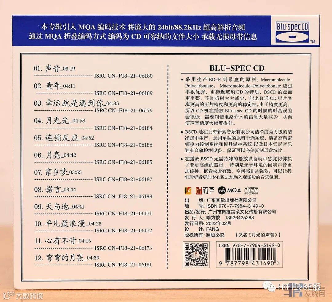 这款《姚思婷 连锁反应》MQA蓝光CD内置了MQA 24/88.2Khz高清音乐数据。