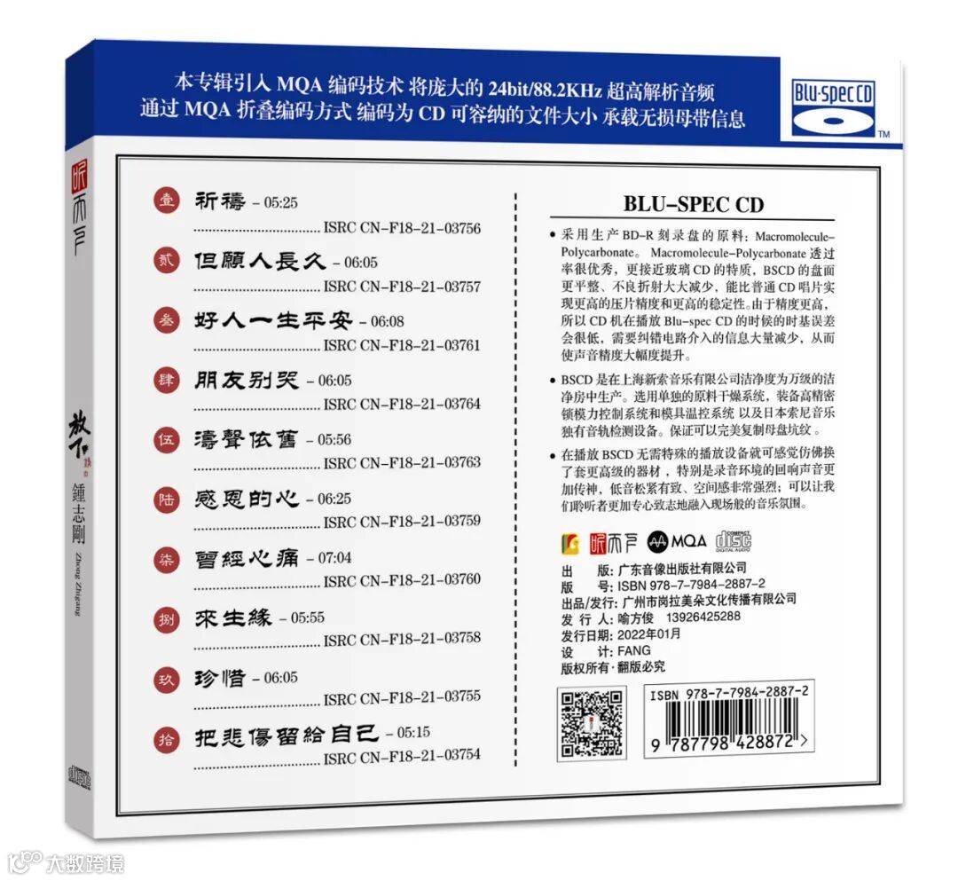 钟志刚《放下》MQA+BSCD首版限量编号1千张。1月6日发行,售价168元。