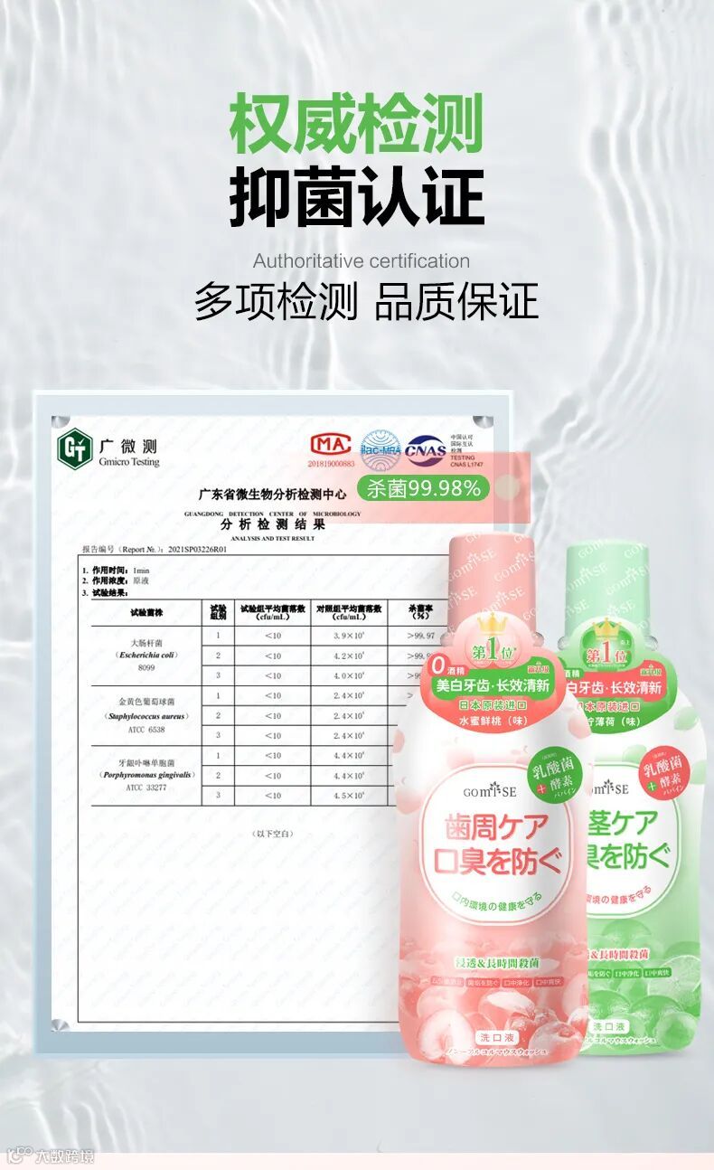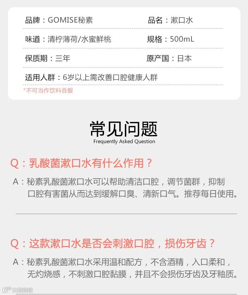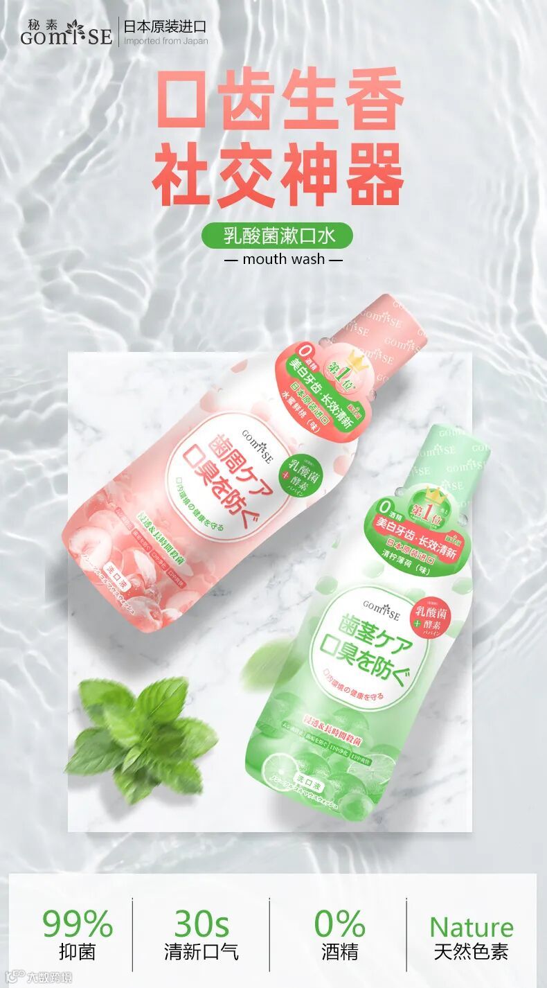 导读:GOMISE秘素乳酸菌漱口水,抑菌率>99%,净化口腔,防止口臭
