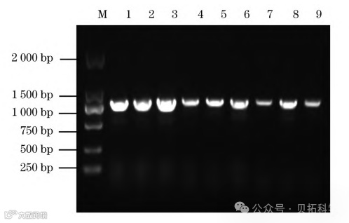 图2 PCR扩增产物琼脂糖凝胶电泳
