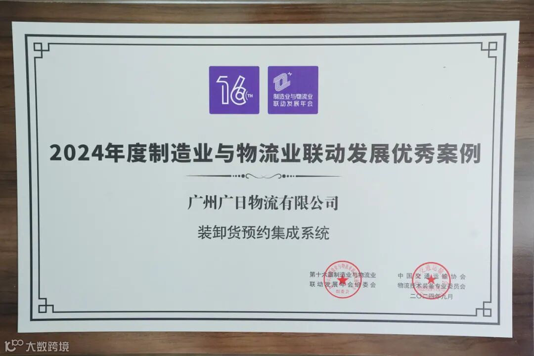 近日,由中国交通运输协会主办,中国交通运输协会物流技术装备专业委员会承办的第十六届制造业与物流业联动发展年会在宁波市隆重召开,本次年会以“新质生产力驱动物流业升级 创新赋能制造业提质增效”为主题,旨在进一步推动物流业与制造业的深度融合,促进两业创新发展,降低全社会物流成本,助力制造业转型升级。广州广日物流有限公司“装卸货预约集成系统”项目凭借创新式预约管理、精准的时间管理、智能精细的全流程物流管理在此次评选中获“2024年度制造业与物流业联动发展典型案例”。