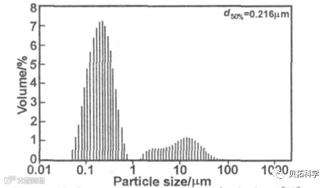 纳米LiFePO4-C的粒度分布图