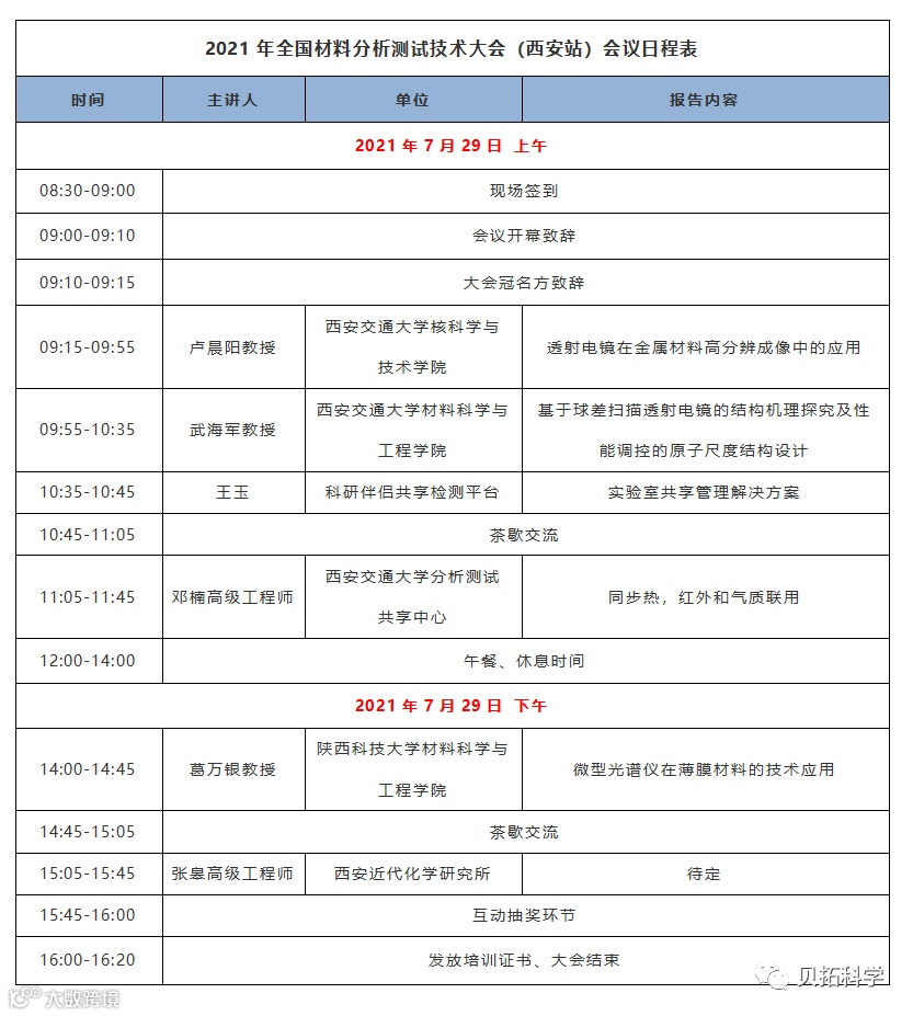 2021 年全国材料分析测试技术大会(西安站)