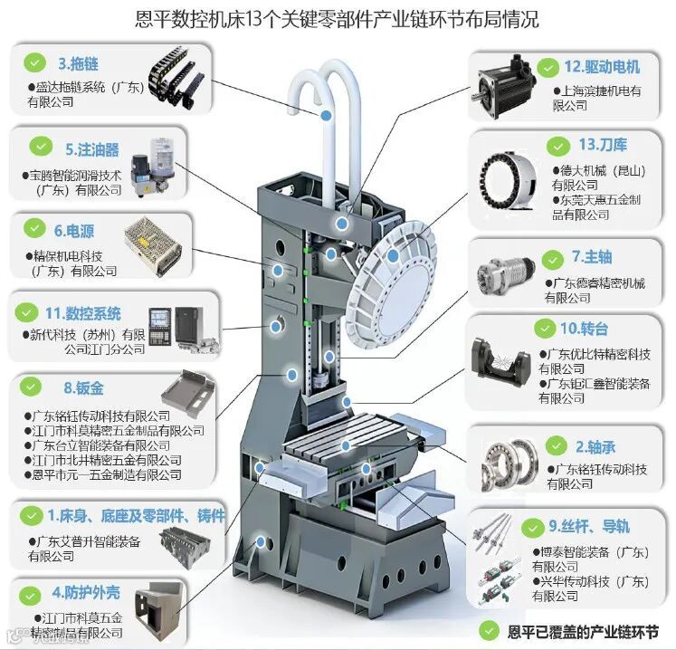 一家企业的落户只是开始。恩平随后采用“链式招商”与“拆解式招商”的策略,将一台数控机床拆解为13个主要零部件,逐一寻找配套企业,精准补链。