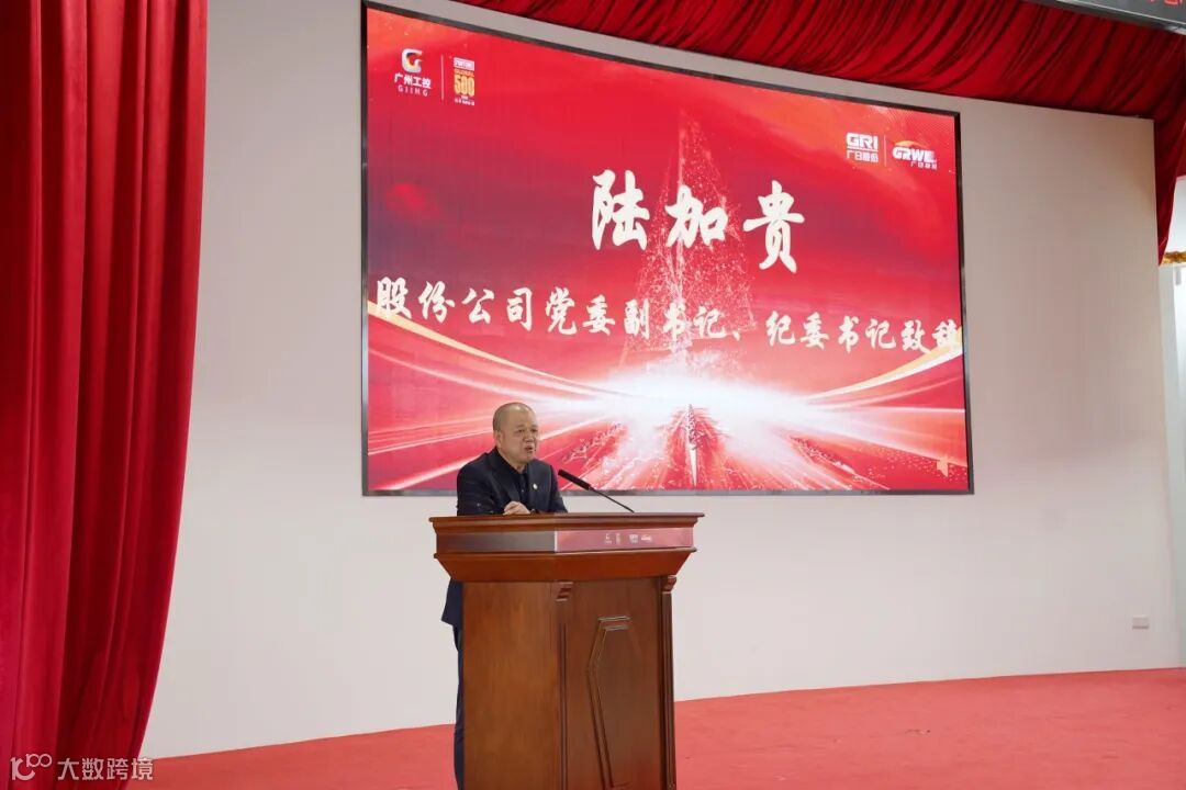 广日股份有限公司党委副书记、纪委书记陆加贵致辞,他充分肯定广日物流2023年度党建工作与企业经营融合发展取得的成绩。在新的一年,陆书记对广日物流提出几点要求:一是广日物流领导干部继续发挥党员的先锋模范作用,凝聚物流力量,攻克公司当前面临的难点、痛点,创造新成绩。二是加强干部队伍建设,加强对驻外干部的教育、管理及激励,支持鼓励各驻点干部在合规经营的基础上,大胆开拓市场业务。三是加强人才培养和技术改造,全面提升公司的市场竞争力!