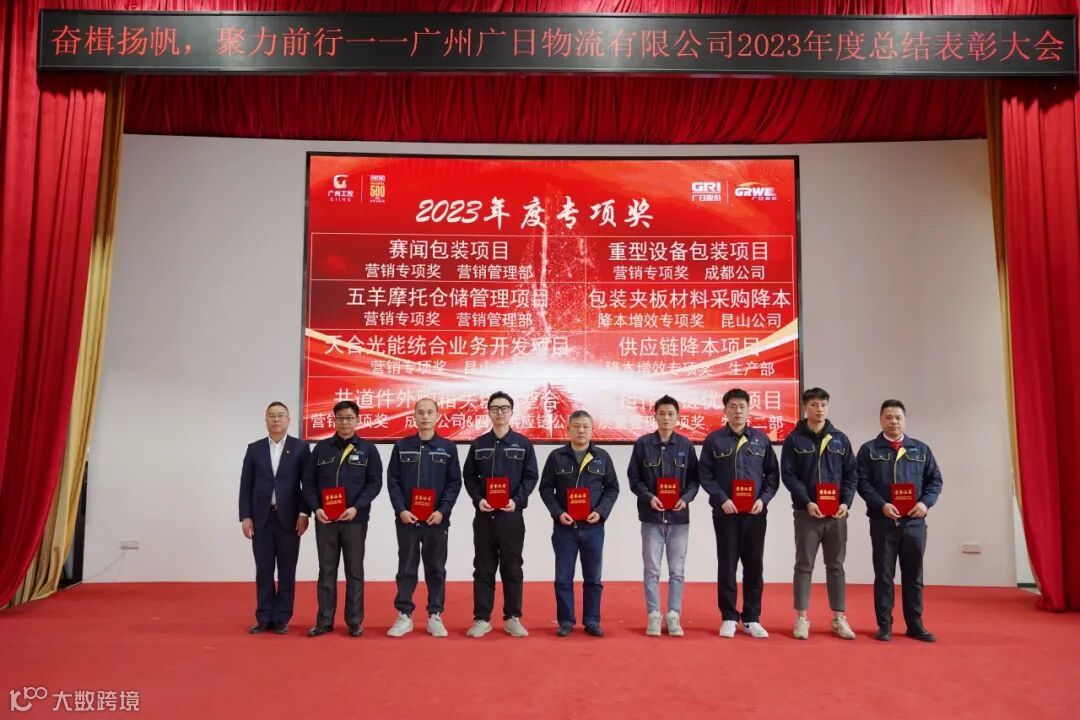 2024年1月25日,广州广日物流有限公司以“奋楫扬帆 聚力前行”为主题的2023年度总结表彰大会在广日工业园党群活动中心隆重召开。广州广日股份有限公司党委副书记、纪委书记陆加贵,广日股份工会主席李克,广日股份审计部部长、广日物流监事陈悦海,广日股份财务部副部长、广日物流董事李碧荣,以及广日物流公司全体领导班子成员、各部门领导、2023年度的先进代表、员工代表共同出席本次表彰大会现场,超过2000人通过线上方式参与见证属于广日物流人的荣耀时刻,共同总结成绩、表彰先进、激励动员全体广日物流人瞄准目标,在新的一年鼓足干劲,创成绩,争佳绩!