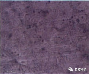 从图3可以看出,碱性物质对石灰石的着色效果并不理想,虽然能清晰看出石灰石内方解石数量,但并没有找出和图1的明显差异。原因可能是碱性物质着色能力强,但是没有按照和石灰石矿物继续反应的思路进行。
