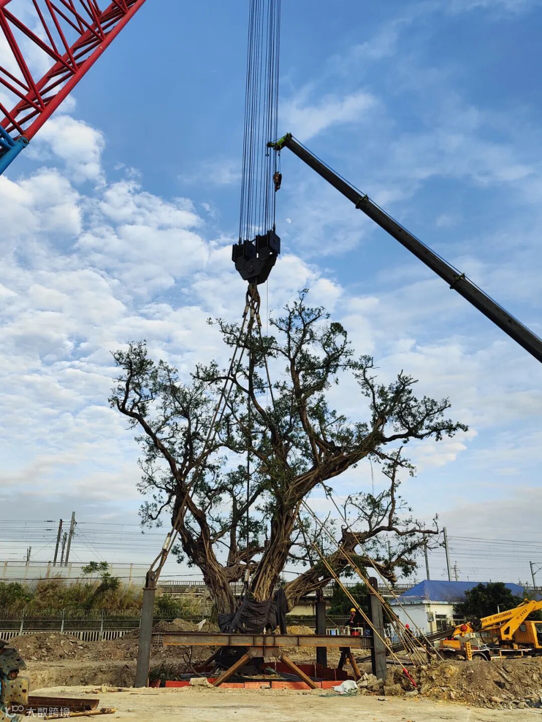 2023年12月22日下午,由广州市绿化有限公司负责实施的《新建铁路珠三角城际轨道交通广州至清远城际轨道交通广州白云至广州北段项目》正式进行吊装移植工作,历经4个小时,成功将44011400120100071细叶榕搬迁至距离原址176m的新家。