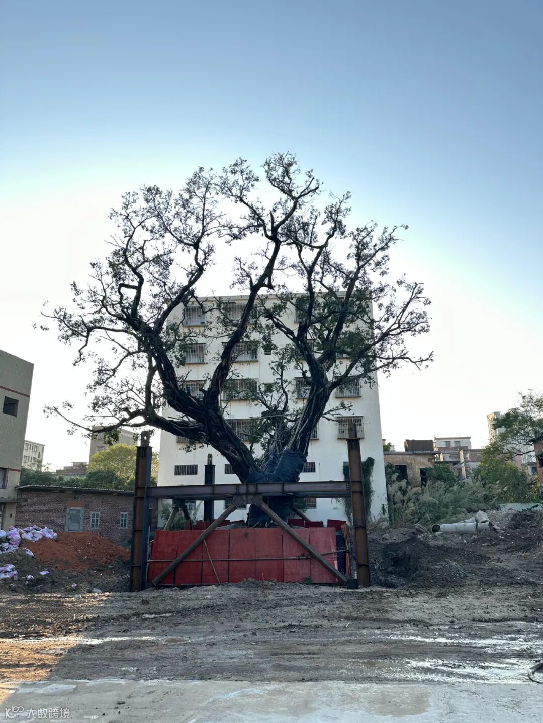 阶段一:实施古树修剪、断根、移植前复壮以及施工场地平整、种植穴挖掘等;