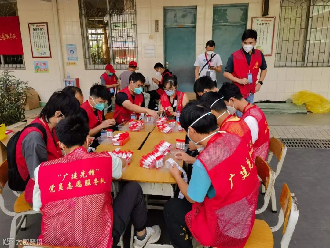 10月28日下午13点,队员们抵达南洲街道后,第一时间明确分工,成立舆情组、核酸组、红码组、医疗组等服务分队,全力做好东风片区第五、第六网格共2803户、6500余人的防疫工作。