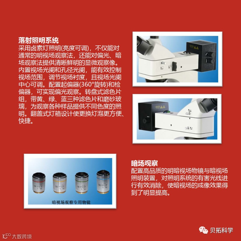 在钢材组织中,有时候会遇到与反射光的材料性能相似甚至接近,但是外观高低差只是很微小的组织。两种结构都说明当入射光在其进行反光后,这两个振幅一样。如果这振幅一样的反射光用肉眼是很难识别的,所以使用环形光光栅和相板,使用透过光体现的滞后四分之一的波段,以便形成正和负的反差,也就是把周相差的光转化为强度不同的光,以便增强分辨力。