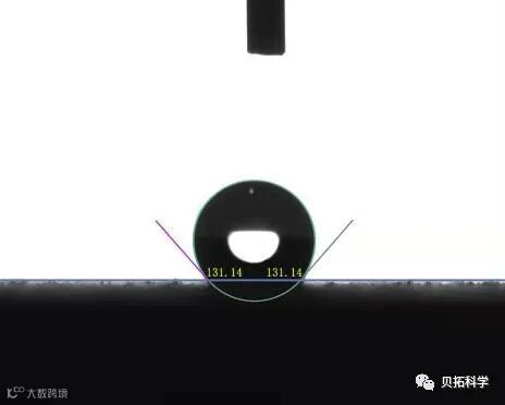 将去离子水座滴在样品表面,通过仪器软件的椭圆法拟合出样品的接触角值