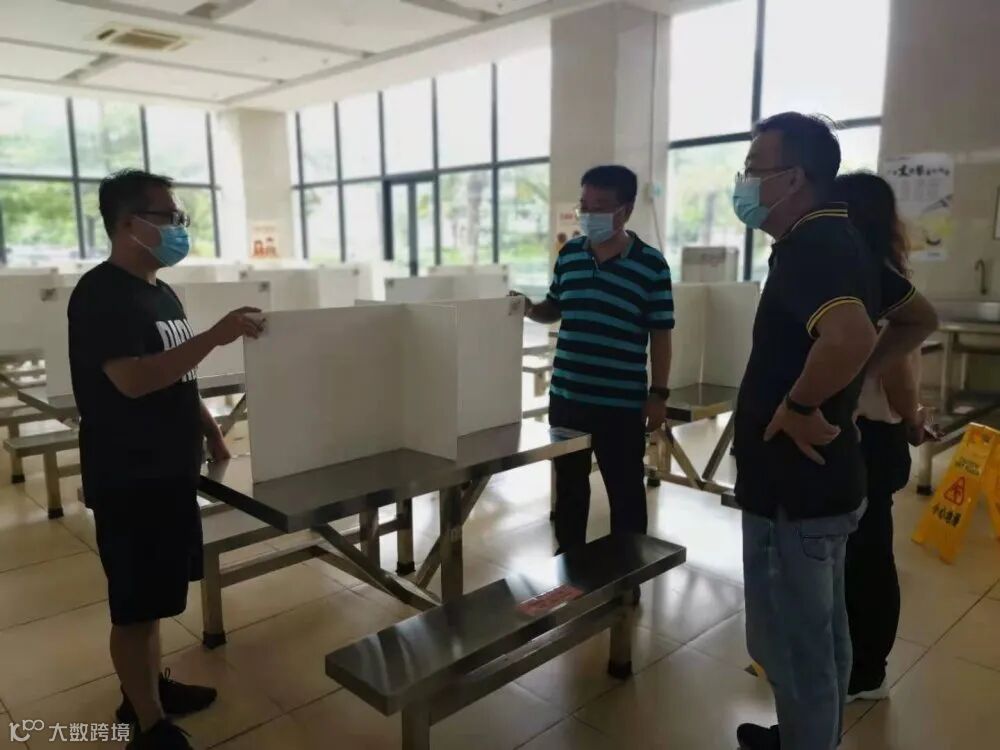 组织相关管理人员对公司饭堂进行专项检查,要求实行分批错峰用餐,保持安全社交距离。