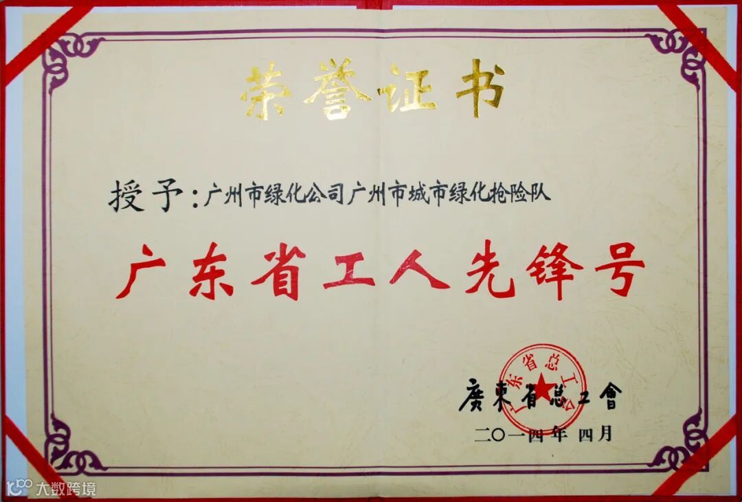 2004年城市绿化抢险中心获广州市政府授予“文明窗口单位”称号,2009年荣获“广州市先进集体”称号,2014年荣获“广东省工人先锋号”称号,2015年城市绿化抢险中心荣获全国“安康杯”竞赛优胜班组称号,2019年荣获“五四红旗团(总)支部”称号,2020年获授广州市“文明单位”,2023年代表越秀区、南沙区参加“羊城工匠杯”绿化技能修建专项竞赛分别获得金奖和一等奖,2024年荣获广东省市政工程质量信得过班组建设活动一等奖等。