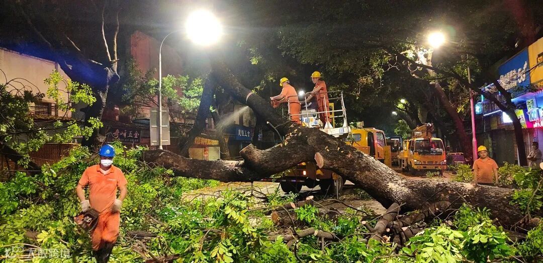 凌晨三点的广州,大多数市民正沉浸在梦乡,手机屏幕偶尔亮起,推送着“台风登陆,请减少外出”的提醒。而另一群人的“深夜剧场”才刚刚拉开序幕:橙色抢险服在暴雨中划出流动的光轨,油锯的轰鸣与风雨声交织成特殊的“交响乐”,40双沾满泥浆的靴子踏过积水,将倒伏的树干从主干道移开。