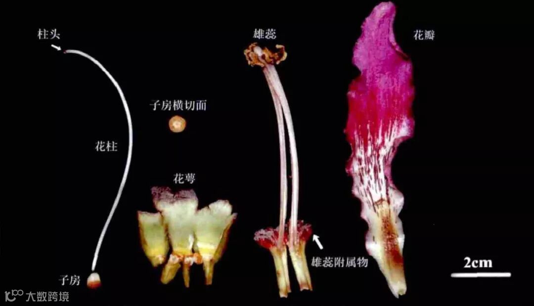 结果发现花芽分化期与形态特征对应关系为:前分化期(枝端生长点)、萼片分化期(枝端生长点)、花瓣形成期(1~2级)、雄蕊附属物及子房形成期(3~4级)、雌雄蕊形成期(4级)、胚珠形成期(5~6级)共6个时期,如图8~9。