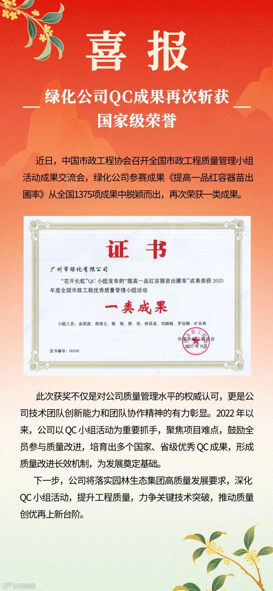 喜报丨绿化公司QC成果再次斩获国家级荣誉