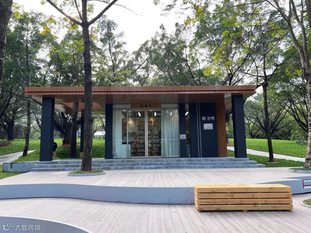 以“轻介入、融自然” 为设计思路,打造公园核心节点 —— 榕书吧。建筑采用轻盈单层钢框架结构,外立面搭配玻璃与原木色金属板材,最大化引入自然采光,整体形态与榕荫绿意浑然一体,宛若从林间自然生长而成,成为兼具颜值与内涵的标志性人文打卡点。