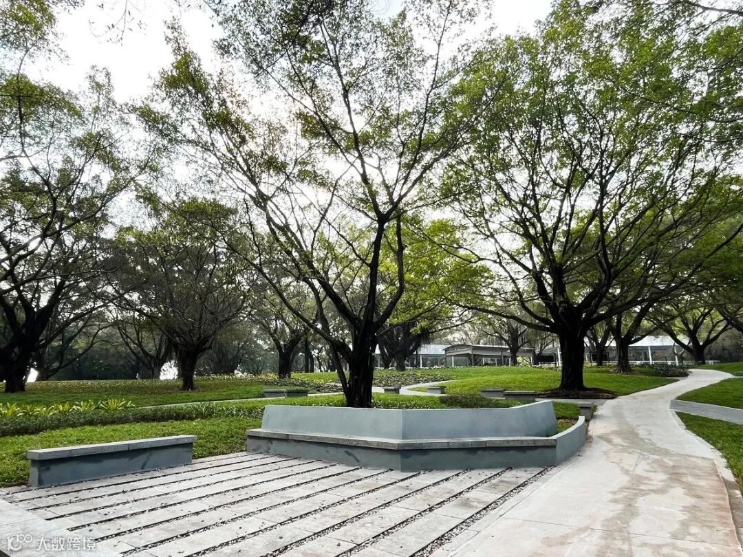 项目地处番禺区大龙街旧水坑村,实施总面积达7.5 万平方米。项目以“生态为底、文化为魂、民生为本” 为核心理念,聚焦植被修复、建筑点缀、设施升级三大维度精准施策,最大限度守护场地原生生态肌理,在万株榕荫之间精雕细琢,将昔日植被零散、设施匮乏的郊野林地,蜕变为融入城市烟火气的生态休闲客厅。