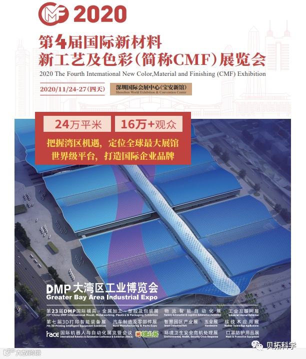 2020第四届国际新材料新工艺及色彩(简称CMF)展以“跨界创新,纵向落地”为主题,重磅推出5G终端及基站功能材料、消费电子外观效果加工及应用两大主题展,聚焦新材料、新色彩与新工艺,抢占市场高地,领航行业发展方向。展会涵盖设计、加工、设备、材料、工艺、测试等制造业全流程,预计观众将超16万人。
