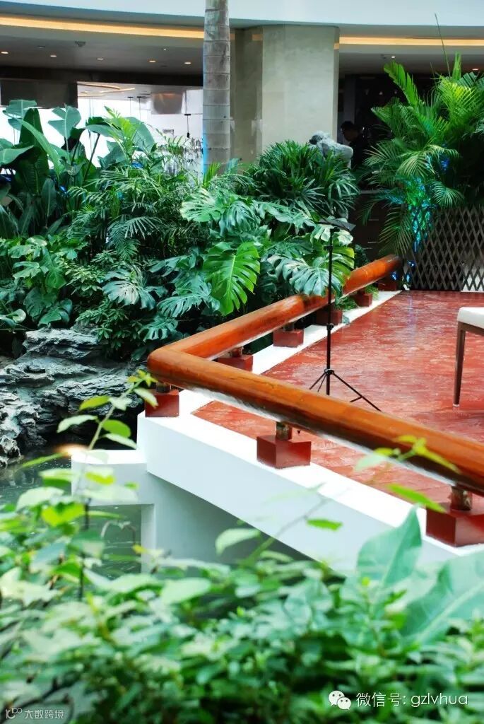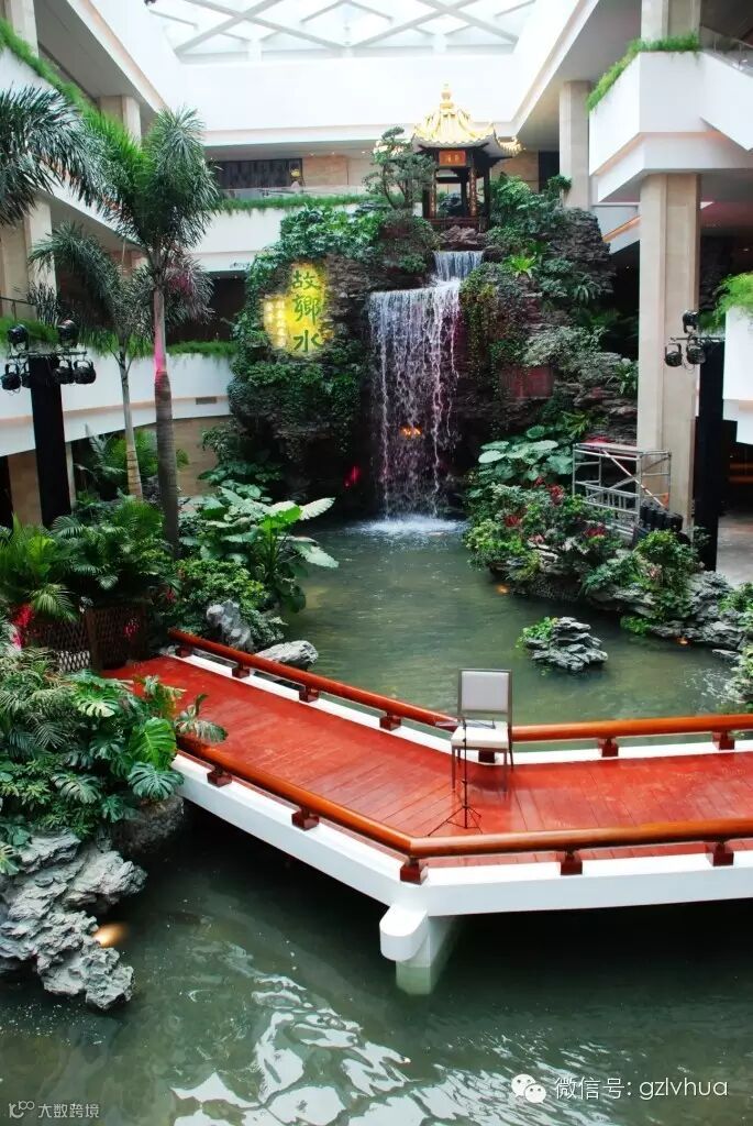 大厅内著名岭南园林景观“故乡水”引人瞩目,她萦绕着许多华侨、游子的思乡情怀,是白天鹅园林景观的灵魂所在。改造之初,绿化公司就希望能原汁原味地保留“故乡水”的造景精粹;历时三年、精雕细琢,我们凭着过硬的施工技术和高超的造景艺术,不仅重构了“故乡水”内消防卷闸施工对景点的破坏,而且新增了100吨天然英石用于造景,搭配富有岭南特色的棕榈科植物、寓意吉祥长寿的罗汉松、象征热情坚韧的勒杜鹃,使“故乡水”焕发着新生的活力!
