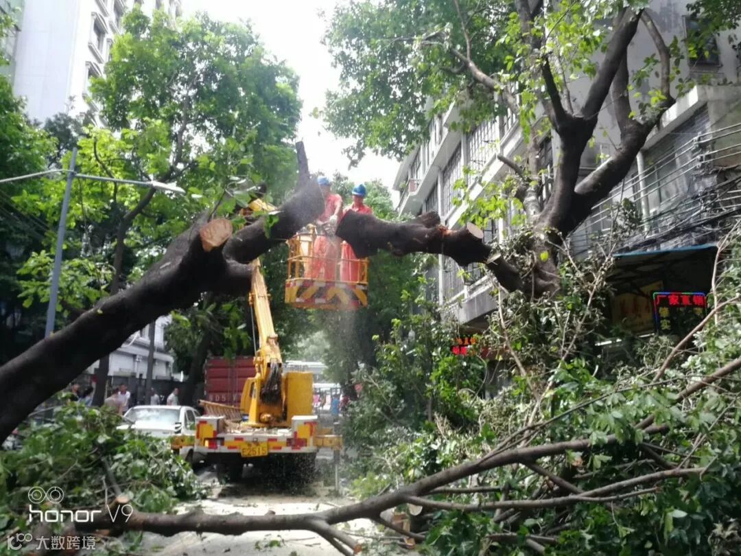 图4 广州市城市绿化抢险队抢险现场(大叶榕倒伏压电线)