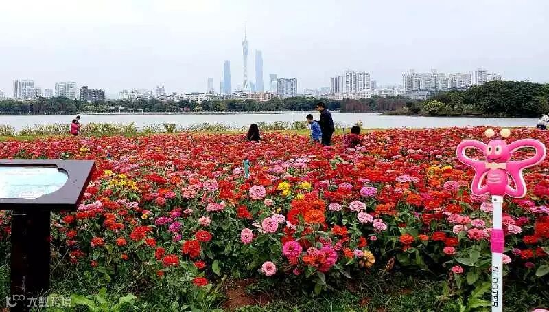 与便民文化广场相邻的是一大片花海,吸引了众多的游人驻留。